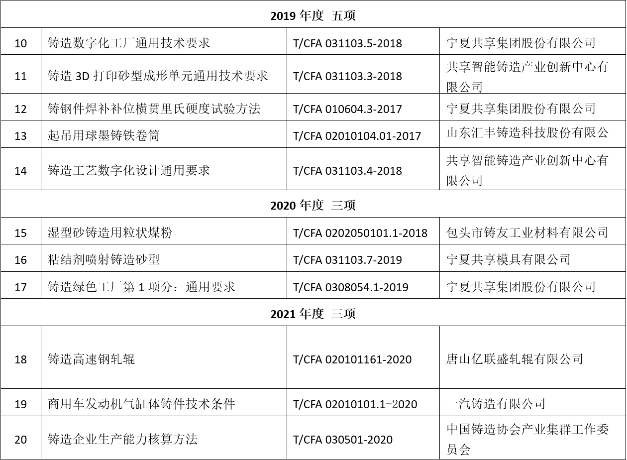 Since 2009, the China Foundry Association has been actively building an advanced group standard system and promoting the application and implementation of group standards. Multiple standards have played an important role in leading industrial development and serving industrial transformation and upgrading. As of the end of 2023, the China Foundry Association has released 161 group standards and is developing 60 standards. Since 2017, the China Foundry Association has selected a total of 23 group standards as demonstration projects for the application of group standards by the Ministry of Industry and Information Technology for seven consecutive years. Since 2021, as a third-party evaluation agency, China Foundry Association has strictly followed the evaluation process to carry out enterprise standard "leader" evaluation work.